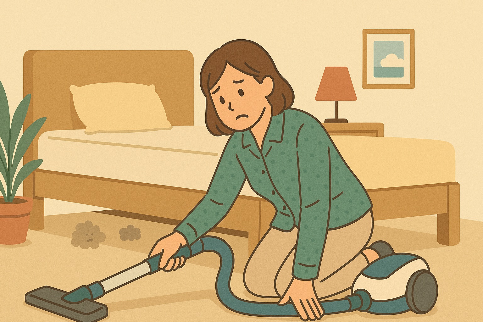 ベッド下のホコリは、ただ汚いだけでなく、床とマットレスの間の通気性を著しく悪化させ、湿気がこもる主要な原因になります。